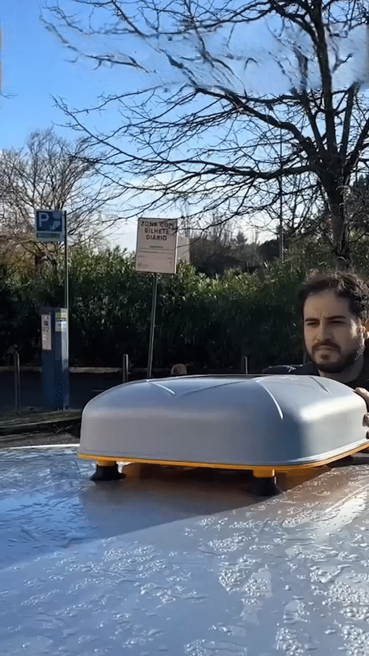 Rovera nutzt empfindliche Vibrationssensoren. Sobald die Abdeckung ausgefahren ist, löst ein sofortiger 110-dB-Alarm aus, wenn jemand versucht, die Einheit abzureißen, den Gurt zu durchtrennen oder das Gerät stark zu schütteln.